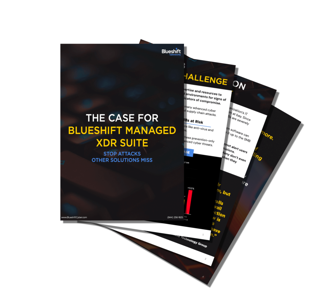 Blueshift Cybersecurity’s Fully-Managed XDR Suite delivers enterprise-grade protection across your entire IT environment—without adding burden to your internal IT team. Built on an open XDR architecture and backed by a 24/7 U.S.-based Security Operations Center (SOC), this comprehensive cybersecurity solution combines real-time threat detection, automated response, and expert human insight to defend every endpoint, cloud platform, and remote user. Key Components of the Blueshift XDR Suite: Security Operations Center (SOC-as-a-Service): Delivered as a white-glove, fully managed service, Blueshift’s U.S.-based SOC handles all monitoring, threat hunting, forensic analysis, and incident response—around the clock, with minimal internal IT involvement. Extended Detection & Response (XDR): Goes beyond traditional EDR and firewalls by monitoring traffic at the packet level across all connected devices, even those that can’t support an agent. Ideal for identifying stealthy or advanced threats. Vulnerability Detection: Combines agent-based scanning for endpoints and servers with agentless scanning for network devices—ensuring total visibility whether assets are on-premises, remote, or in the cloud. Managed SIEM: Delivers security analytics, compliance support, and forensic log analysis across your infrastructure, including endpoints, servers, cloud platforms, containers, and remote workers. Unlimited logs are stored on-prem for full control and compliance. Cloud Monitoring: Ingests real-time alerts and data from cloud environments like AWS, Azure, Google Cloud, and Office 365. SIEM agents can be deployed to virtual machines for deeper visibility and control. Work from Home Protection: Blueshift’s XDR agents log incidents from remote users to an on-prem Analysis Edge Node via secure cloud connections. Optional Micro Edge Nodes offer affordable, enterprise-grade security for home networks. Cyber Threat Edge Node: Applies threat intelligence, intrusion detection, deception tech, and full packet inspection at your network edge—blocking malicious activity before it spreads. Smart automation filters alerts to reduce noise for the SOC. Seamless Integrations: Works with leading security tools like SentinelOne, Sophos, Windows Defender, and Blueshift’s own Application Allowlisting to ingest and correlate threat data across multiple sources. Multi-Tenant Management Console: Gives real-time visibility into your cybersecurity posture, showing exactly how Blueshift is detecting and blocking threats across your infrastructure—from a single, easy-to-use dashboard. With Blueshift’s Fully-Managed XDR Suite, you get layered, AI-powered protection tailored to today’s hybrid, cloud-first environments. From endpoints to cloud, from HQ to home offices, Blueshift covers it all—delivered as a service, managed by experts, and built to stop modern threats before they disrupt your business. Want to see it in action? Contact us today to learn how our XDR Suite can transform your cybersecurity strategy.